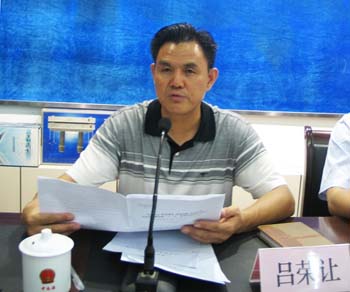 左圖為院長張孝文在會議上重點發言,右圖為書記呂榮讓傳達李局長報告