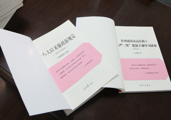 活動中,向副科級以上干部、各黨支部書記每人贈送了《作風建設永遠在路上—“三嚴三實”黨員干部學習讀本》、《十八大以來廉政新規定(最新修訂版)》兩本書籍,并附上溫馨的讀書月活動贈言。同時,要求大家把這兩本書作為重要思想行動指南,認真學習,用正確的理論武裝頭腦,深入踐行“三嚴三實”精神,堅定理想信念,增強黨性修養,提升實干精神,筑牢防腐拒變的思想防線。這次活動也將對區研院經濟健康發展發揮積極作用。(胡劍瀟/文)