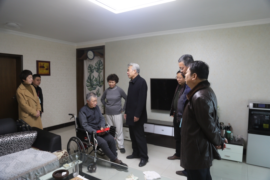 萬兆發一行在我公司黨委書記、執行董事邢憲龍,黨委副書記、總經理宋化清的陪同下走訪慰問因病致困的劉憲、李建堂2名困難職工,詳細詢問他們的身體和生活狀況,為他們送去米、面、油等生活用品和慰問金,并代表集團公司送上誠摯的新春祝福。