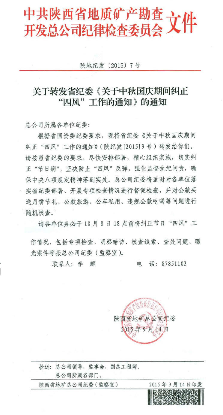 中秋、國慶“雙節”將至,為進一步加強“雙節”期間黨風廉政建設工作,堅決制止奢侈浪費和節日腐敗等不正之風的發生,切實把黨風廉政建設有關要求落到實處,推動領導干部廉潔自律工作深入開展。現轉發總公司有關通知,請遵照執行。